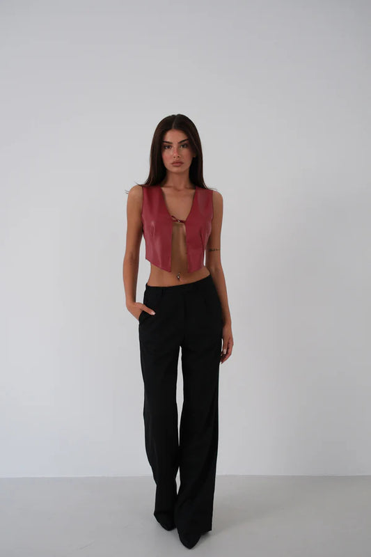 Burgundy red eco-leather vest