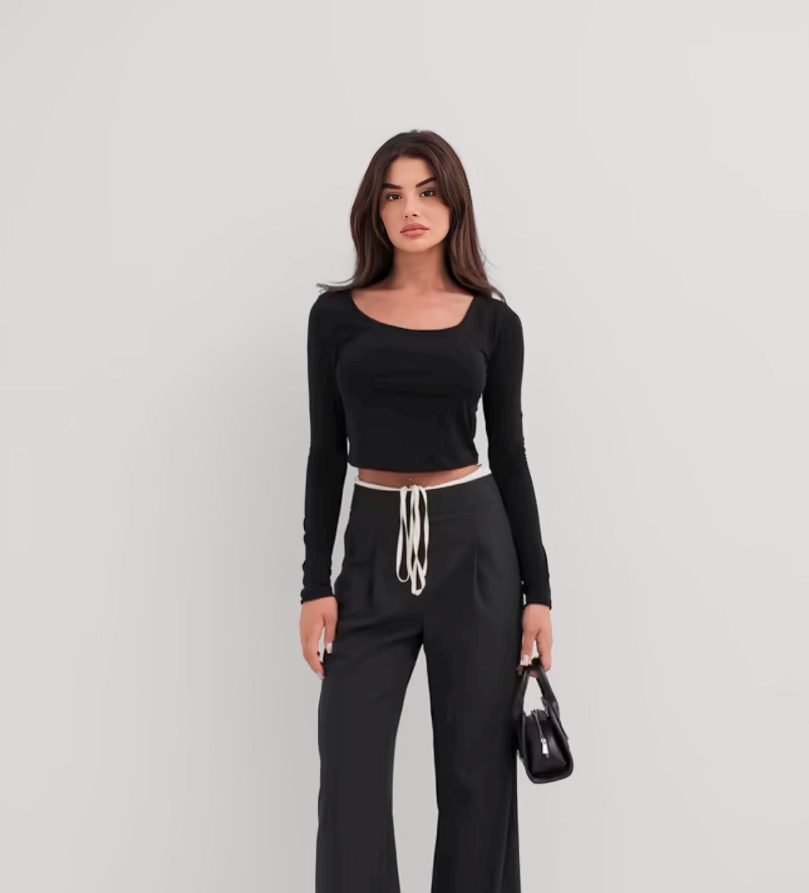 Make every evening unforgettable with this Squareneck Long-Sleeve Crop Top — your essential for turning up the heat after dark.